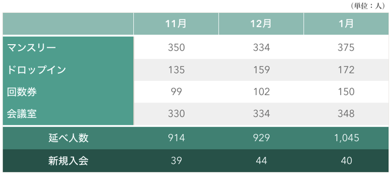 2019年1月のご利用人数の報告です。