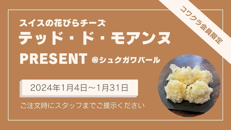 なんと!このたび!2024.1.4〜1.31までのコワクラ会員期間限定で上のチーズを一つプレゼントしてくださることになりました。